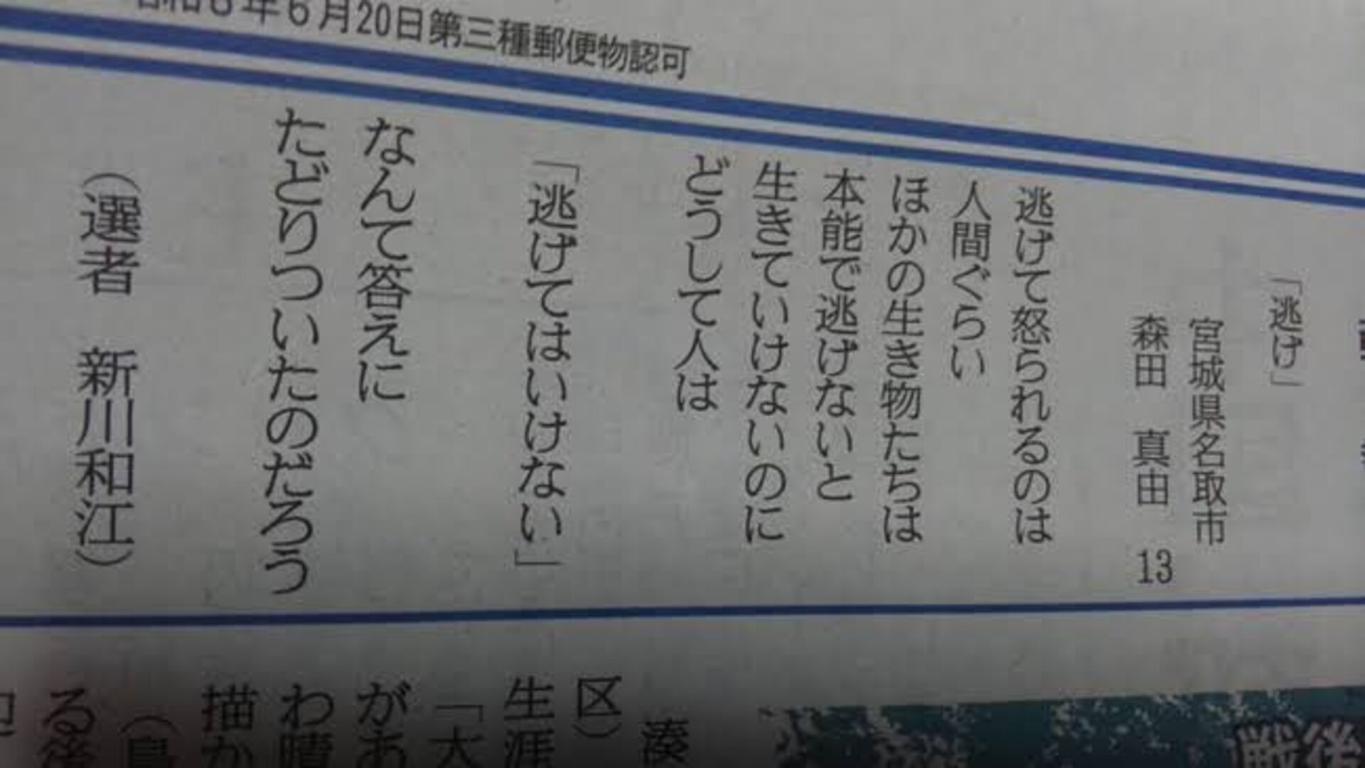 20代の頃、東京で公団の森さんと横断歩道を渡っていた時のことを思い出した。渡ろうとする自分らの横に、左折しようとしている車が待っていて、森さんは小走りに渡ろうとしたが、自分は普通に歩きながら「法律では歩行者が優先だから」と言うと、「そういう考え方ってなんか嫌い。早く渡ってあげた方がいいんだから早く渡ってあげればよくない?」と返された。とても自分がギスギスした人間に思えて、それからは横断歩道を早足で歩くようになった。