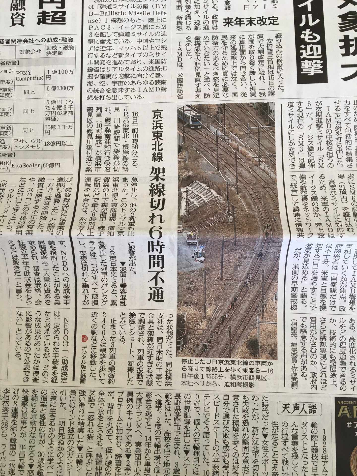 セミナーの帰り道、東京駅に着いたら東海道線と横須賀線が止まっていた。仕方なく品川から京急経由で帰る。横須賀線でのんびりビール飲みながら帰ろうと思っていただけに、残念すぎるT”T