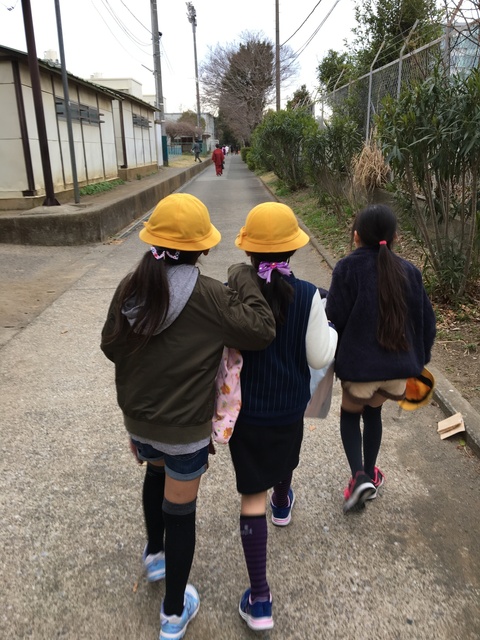 やっと今日から家庭数だよー と喋りながら歩く妹たち