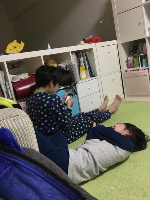 病院行って薬もらって、だいぶ元気になった侑生。もう寝る時間だというのに、采生ちゃんと大騒ぎしている。しばらく寂しかったのだろうと放っておいているオレと、同じこと考えてるのか、なにも言わないめめ。